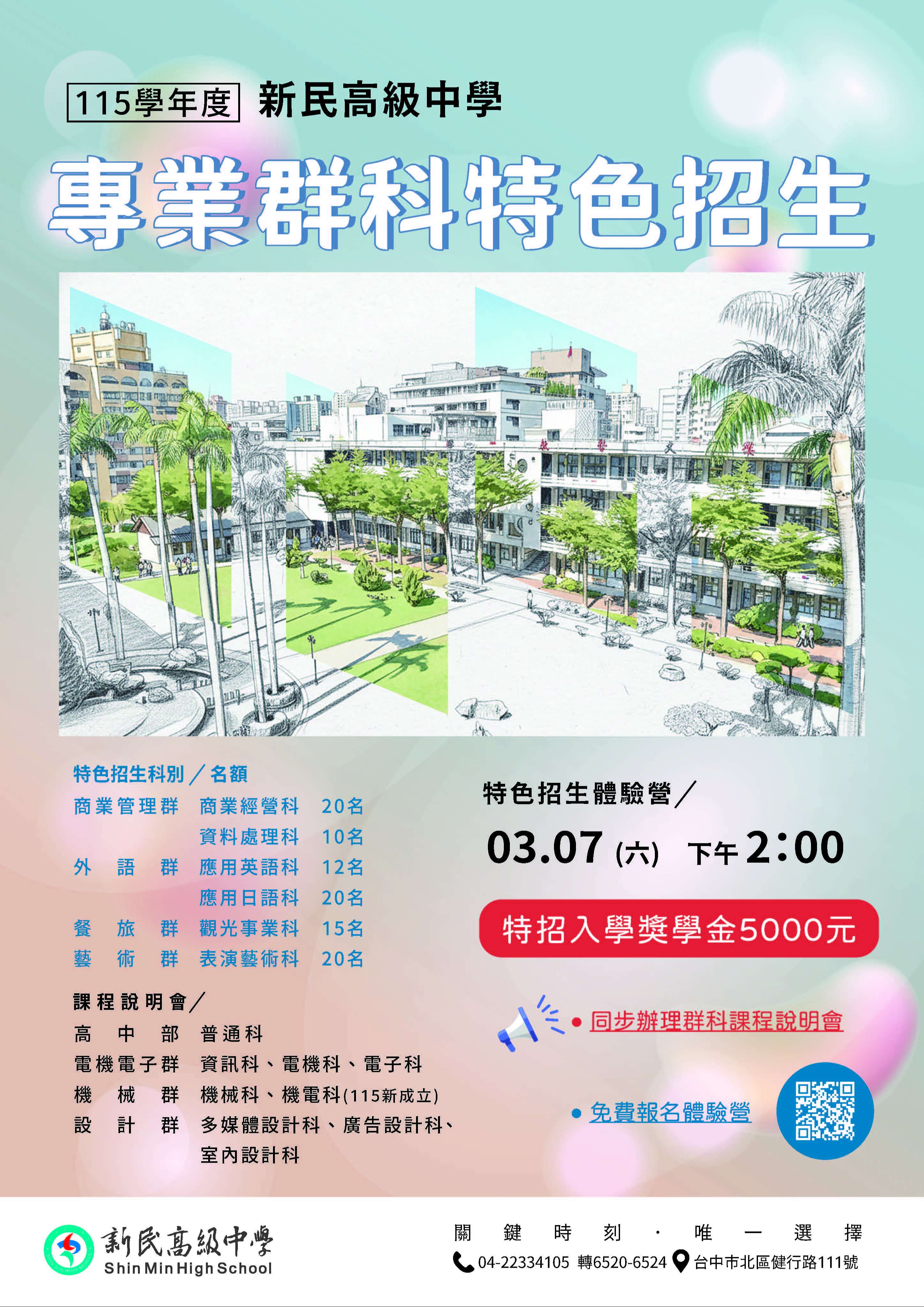 (一)特色招生體驗營:3月7日(星期六) 下午2時。