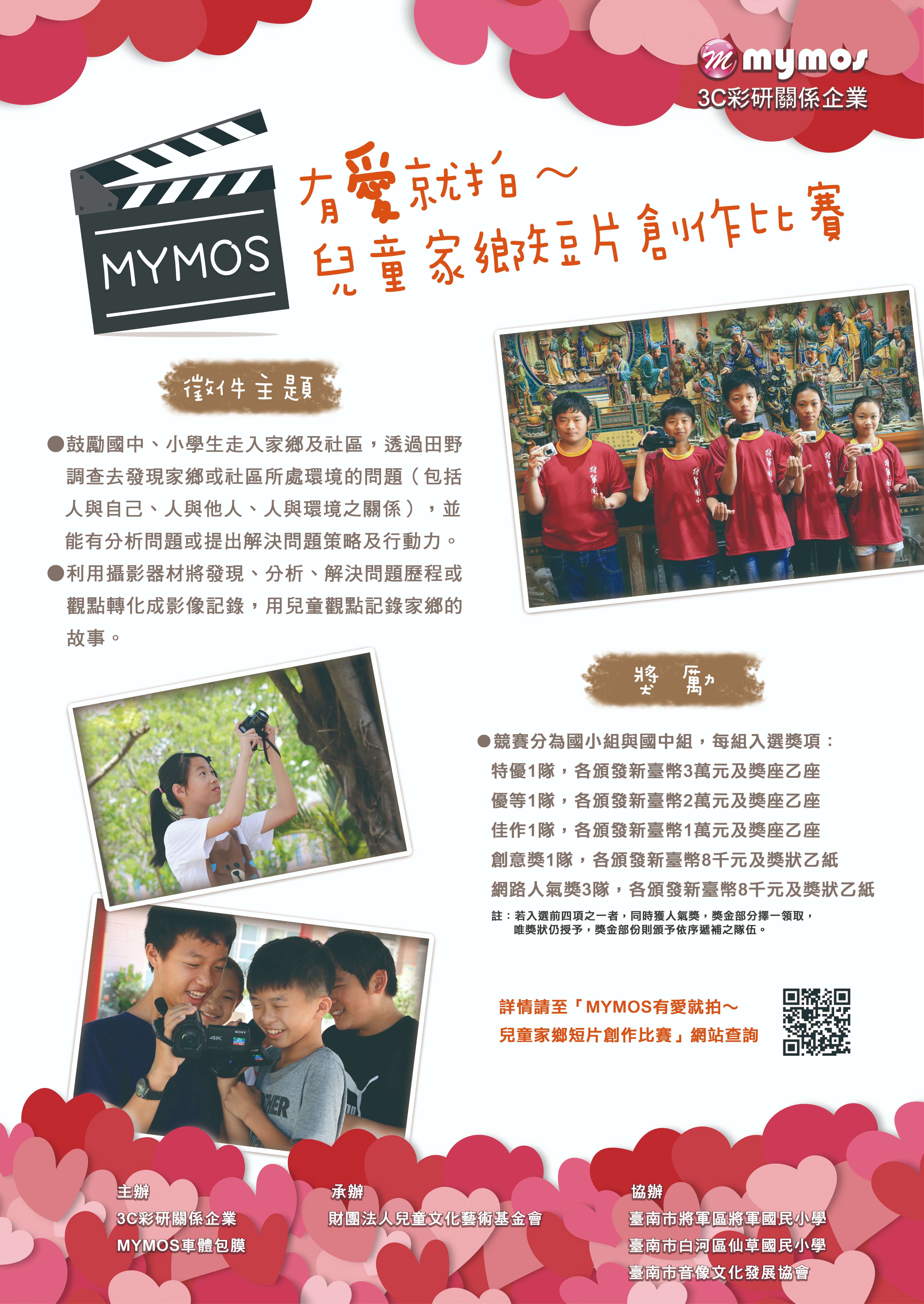 財團法人兒童文化藝術基金會辦理「有愛就拍〜兒童家鄉短片創作比賽」徵件,總 獎金達18萬,徵件日自2019年12月1日起至12月30日止。