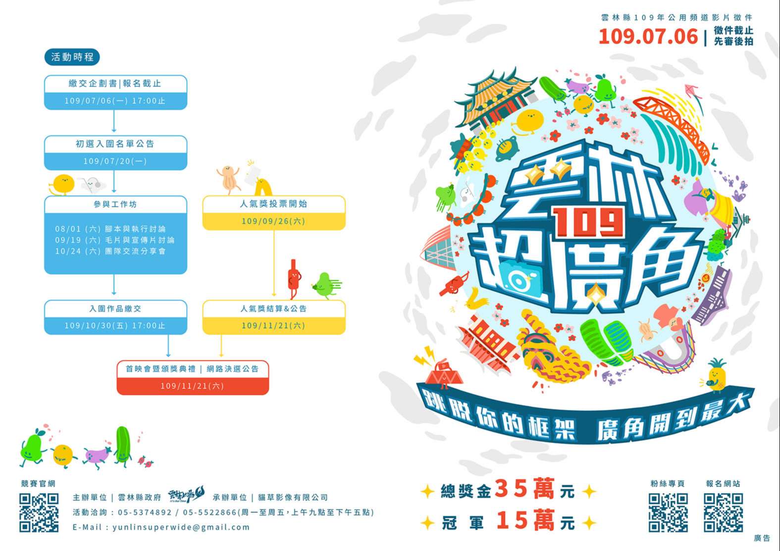 邀請全國對影像創作懷有熱情者以「雲林好好玩」 或「雲林孩子好富有」兩大主題進行影片創作。創作者可 透過人文、風景、歷史、美食、旅遊、雲林事物、奇幻題 材等各種元素介紹「雲林好好玩」;或者透過健康、營 養、品德教育、舒適學習環境的角度,傳達出「雲林孩子 好富有」主題,來介紹、推廣雲林,創作出相關的劇情、 動畫、紀錄等類型影片作品。