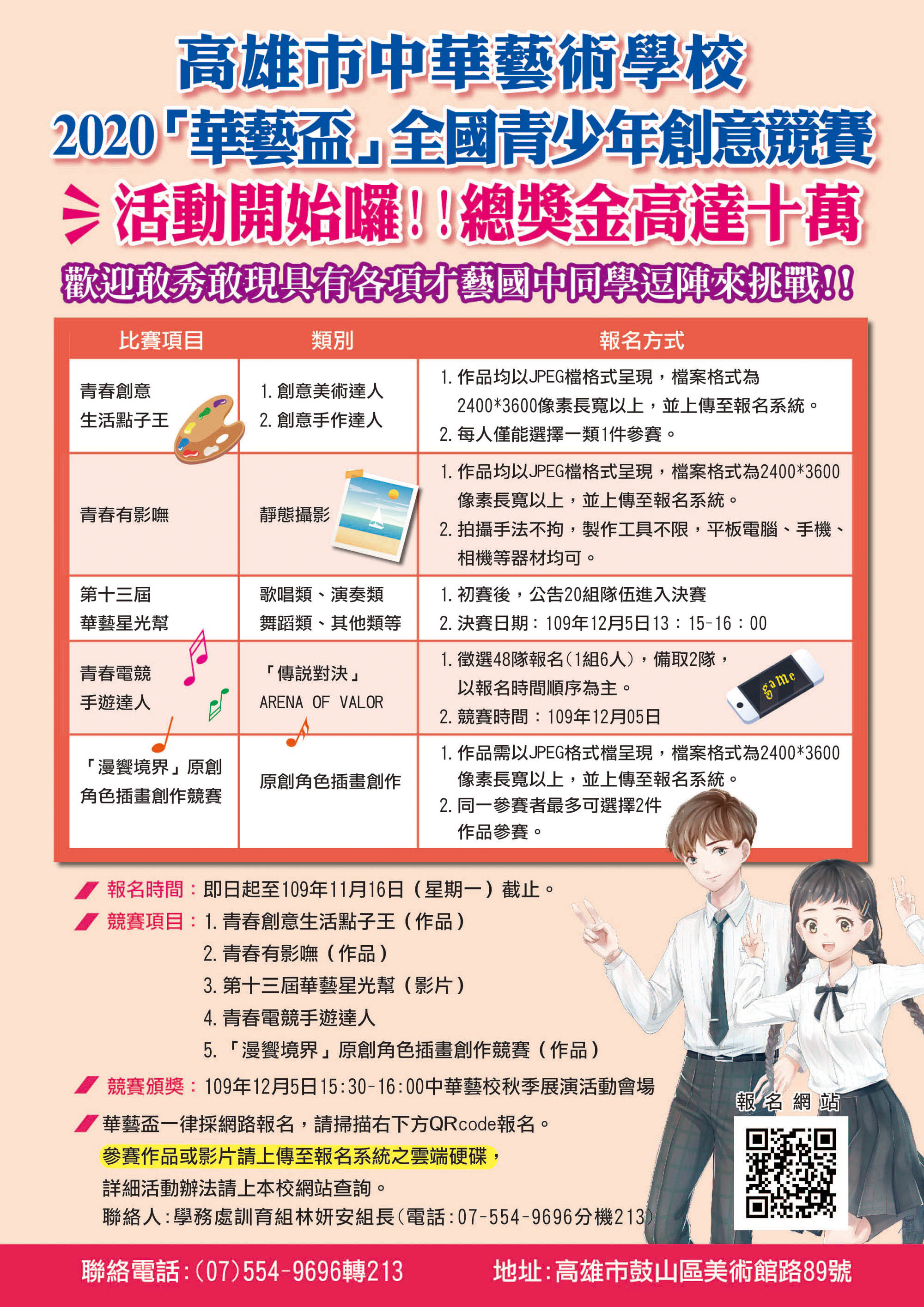 (四)報名方式︰一律採線上網路報名,電話報名恕不受理。 (如有中華藝校學生推薦,請在報名網路表單上註明)