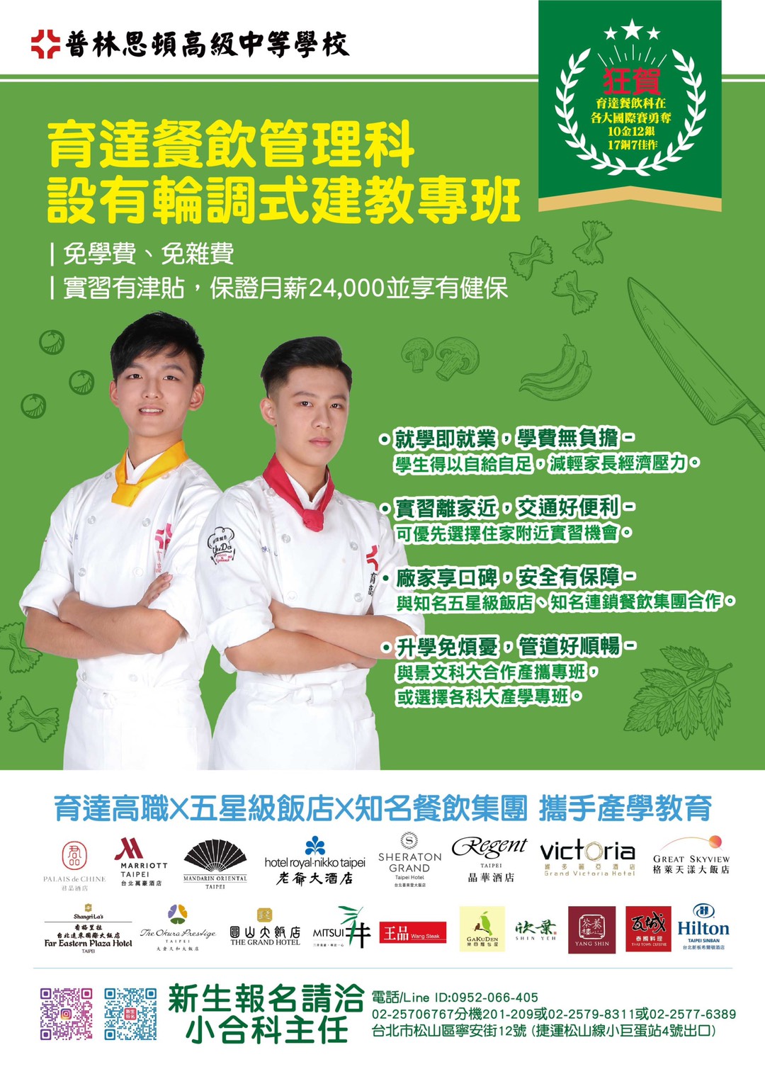 一、餐飲管理科與五星大飯店(晶華酒店、台北喜來登大飯店、台北君悅大酒店..)及知名連鎖產業(王品集團、欣葉國際餐飲集團、瓦城泰統集團..)合作,品牌大有保障。