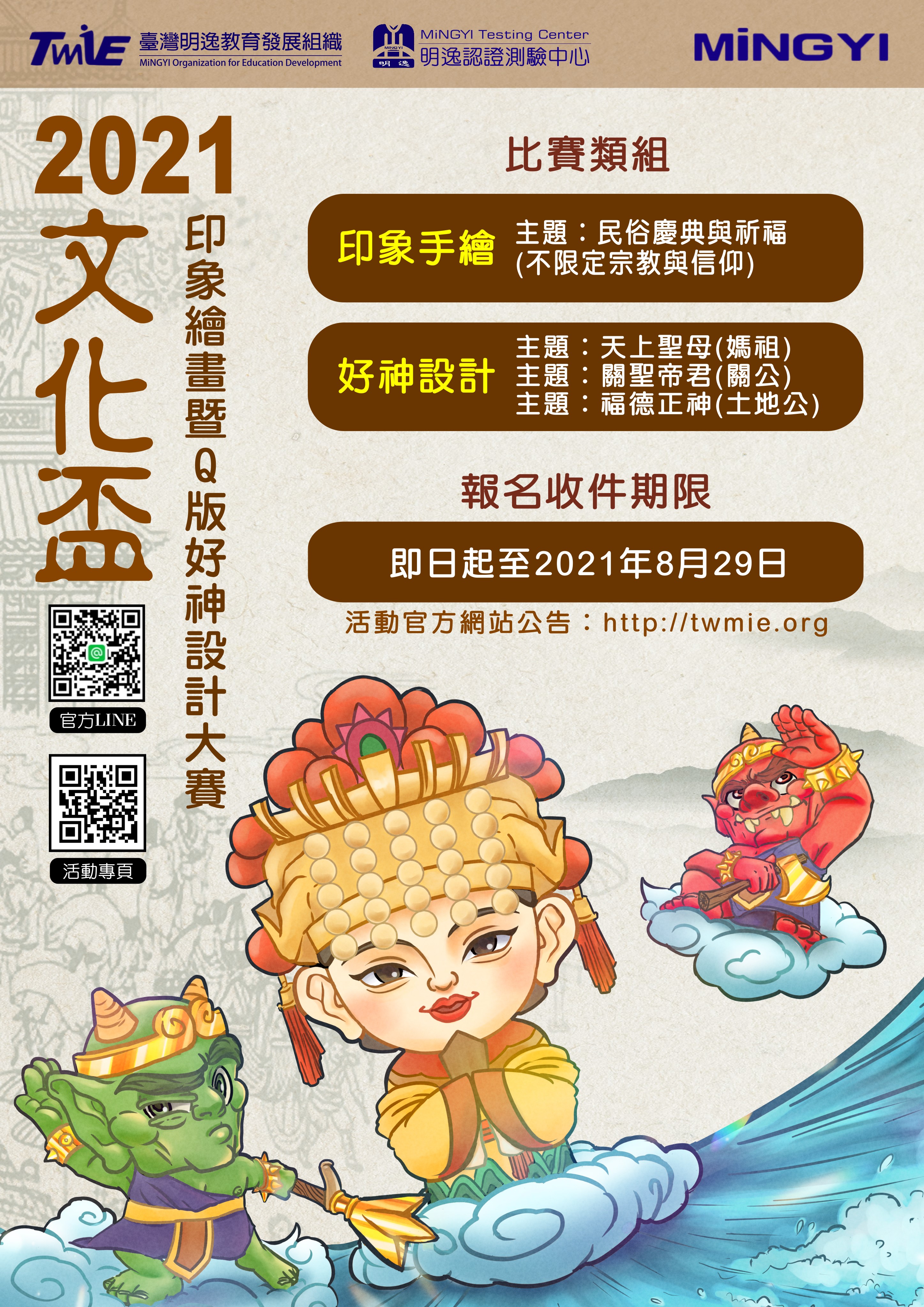 (四)本屆指定主題: 1、印象手繪組:民俗文化之美-信仰。 2、Q板好神設計組:天上聖母-媽祖、關聖帝君-關公、福 德正神-土地公。