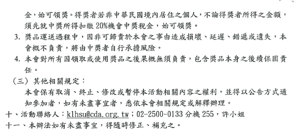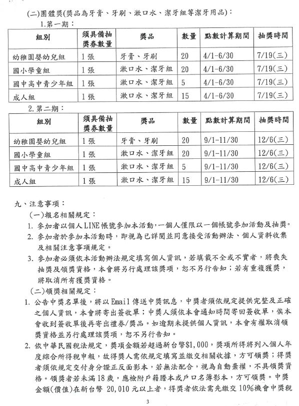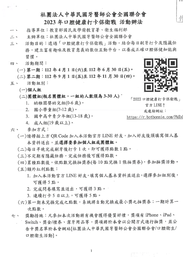 本活動資訊可至該會網站(https://www.cda.org.tw/口 腔衛生/口腔衛生活動)下載,相關問題可逕洽該會承辦 人許小姐,電話:25000133分機255。