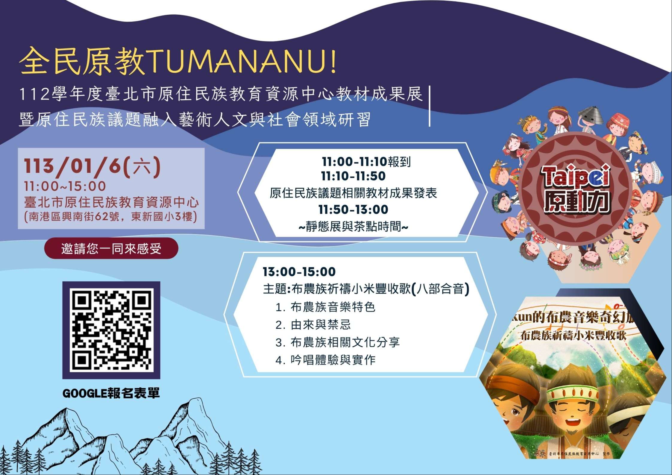 112學年度臺北市原住民族教育資源中心教材成果展暨原住民族議題融入藝術人文與社會領域研習實施計畫及海報