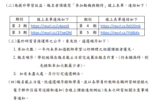 五、報名方式:請於報名截止日前逕行登入臺北市教師在職 研 習網站(https://insc.tp.edu.tw)報名,並經行政程序 核准後,再由學校研習承辦人進入系統辦理薦派報名。