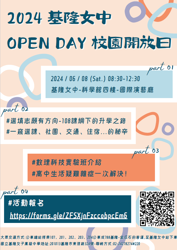 四、當天基隆女中校園開放停車,額滿為止。