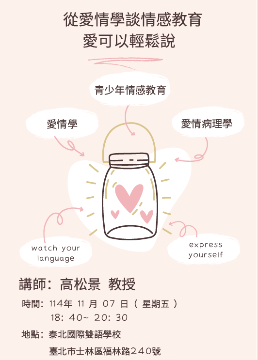 講座地點:臺北市私立泰北高級 中學(地址:臺北市士林區福林路240號)。